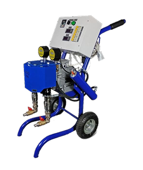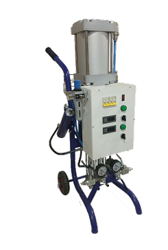 В специальном баке пеногенератора заливается изоцианат и закрепитель. Установка забирает из баков компоненты в необходимом количестве и подаёт по шлангам к пистолету. Под действием сжатого воздуха и нажатием специалистом на курок пистолета, происходит выброс пенополиуретана на поверхность.