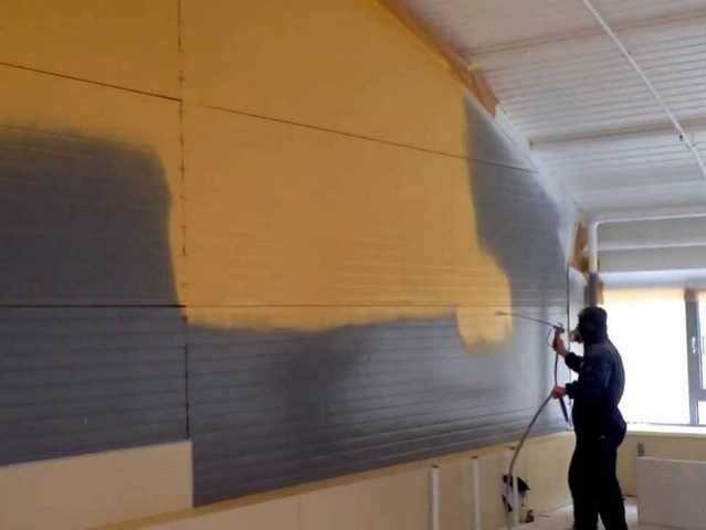 Нанесение краски методом распыления позволяет создать плёнку, которая защищает стены, металлоконструкции и прочие поверхности от негативных воздействий окружающей среды